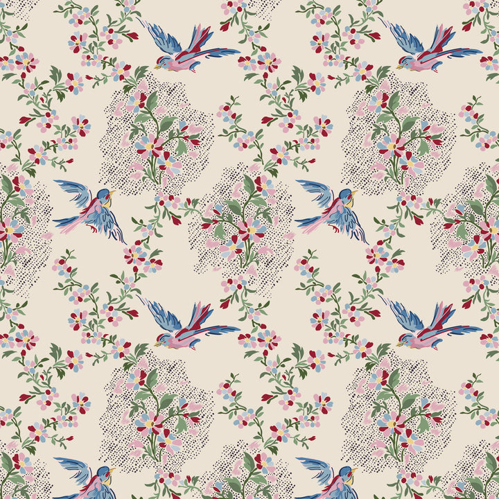 1/2 metro de Doble Ancho Pájaros Ginebra sobre Marfil Devonstone 274 cm **Llega el 31 de octubre**