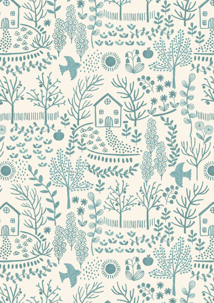 1/2 metro de Jardín sobre azul Casita Bonita azul sobre marfil