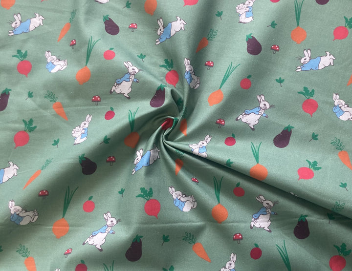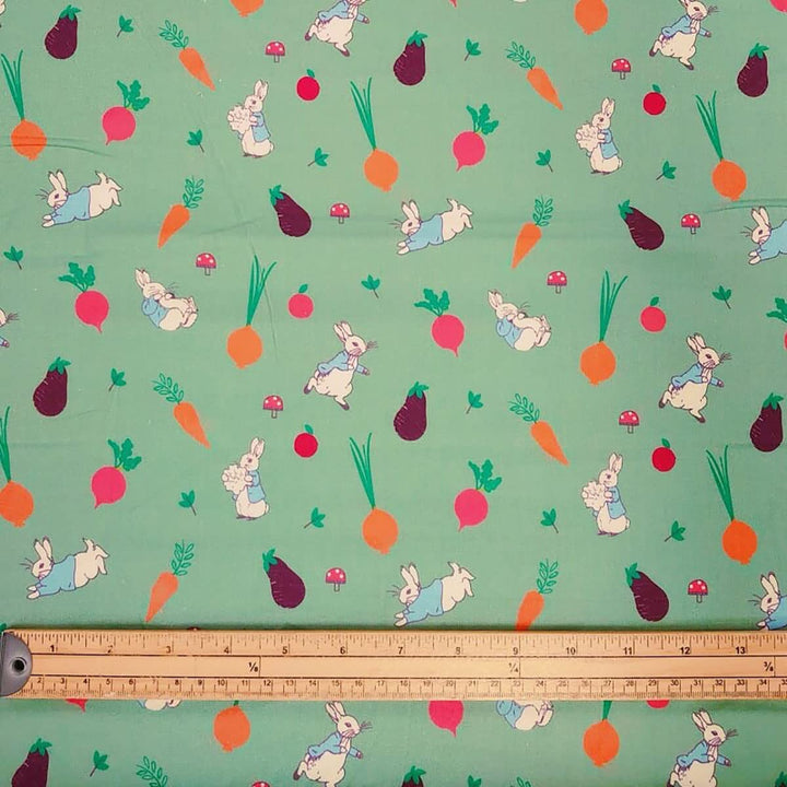 1/2 metro de Tela de Algodón Estampada - Peter Rabbit: La Alegría de un Huerto Casero verde **Llega el 15 de octubre**