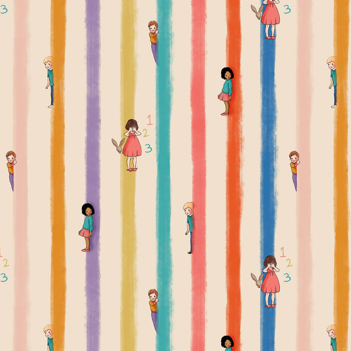 1/2 metro de Tela Belle and Boo Parque Infantil - Rayas de Colores Las Escondidillas - Diseño Infantil Encantador - 110 cm Ancho + Llega el 31 de octubre