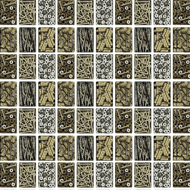 Tela de algodón con un patrón ingenioso que celebra la belleza industrial: tornillos y tuercas en un diseño gráfico que mezcla funcionalidad con creatividad visual. Este textil único combina la tradición con una perspectiva moderna y lúdica.