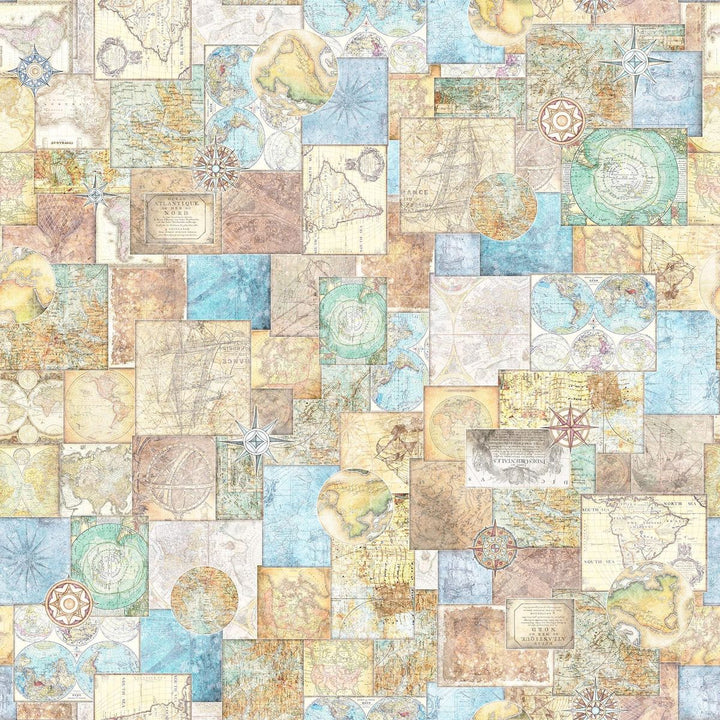 1/2 metro de Tela de algodón Doble Ancho Mapas del Mundo en beige 274 cm QT *Llega el 17 nov*