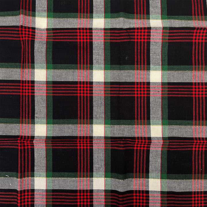 1/2 metro de Tela homespun de telar Tartán navideño negro con rayas rojas y verdes y filamento dorado **Llega el 15 de octubre**