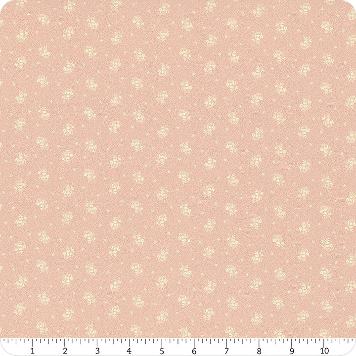 1/2 metro de tela de algodón Flores delicadas y estrellitas sobre palo de rosa Colección Mercería y Punto de Cruz