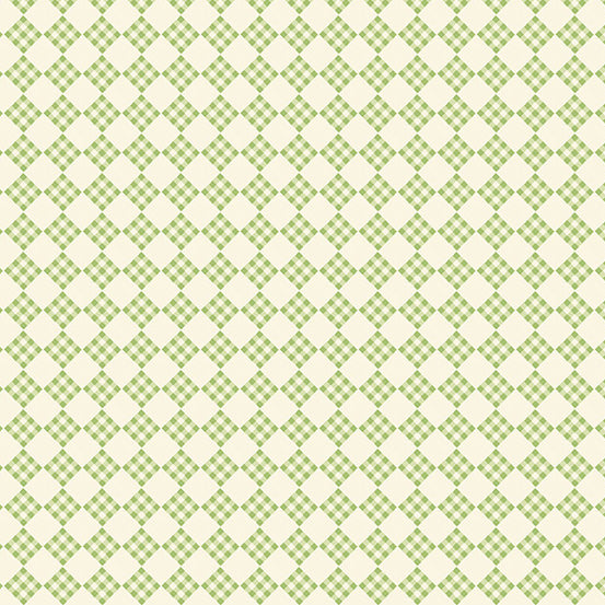 1/2 metro de tela de algodón Rombos de Mascota verde sobre marfil Amuleto de la Suerte **llega el 15 de diciembre**