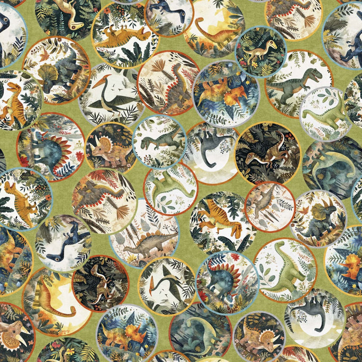 Esta tela de algodón 100 % presenta viñetas redondas con medallones de dinosaurios en un vibrante tono verde oliva, perfecta para proyectos de artesanía que buscan destacar con un toque audaz y original. Ideal para crear piezas únicas y llenas de personalidad, esta tela resistirá el paso del tiempo mientras añade un aire intrépido a tus creaciones. Disponible en cortes de medio metro, es la opción ideal para quienes quieren marcar la diferencia en cada detalle.