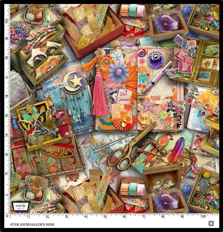 ¡Libera tu creatividad con esta tela única! Michael Miller Junk Journal presenta un diseño multicolor inspirado en el arte del scrapbooking y journaling creativo. Perfecta para proyectos que cuentan historias y expresan tu estilo personal.