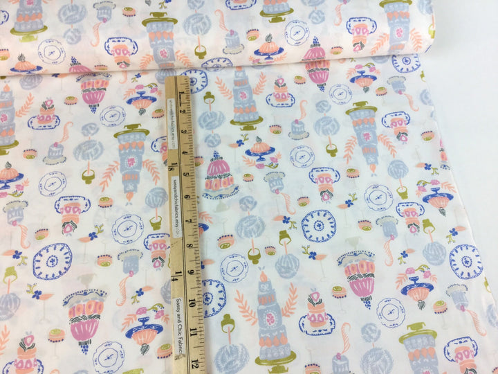 Tela de algodón 100% de excelente calidad con detalles de brillo metálico que le confieren un acabado sofisticado. Presenta un hermoso diseño de pasteles en tonos suaves sobre fondo blanco, parte de la colección Dear Stella. El brillo metálico añade dimensión y elegancia a cualquier proyecto. Ideal para prendas, accesorios y trabajos de costura creativa. Venta por medio metro. Entrega el 15 de diciembre.