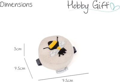 Este alfiletero de muñeca es una forma práctica y elegante de llevar tus alfileres y agujas siempre contigo. Confeccionado en lino con una hermosa abeja en apliqué, cuenta con una cómoda correa elástica que se ajusta a tu muñeca. Perfecto para costureras, maestras o como regalo especial. Dimensiones: 3.2 cm x 7.6 cm x 7.6 cm. Limpieza en seco únicamente. Mantén tus herramientas de costura al alcance mientras trabajas.