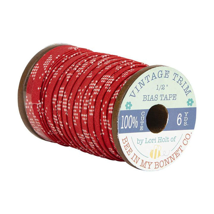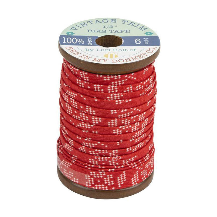 Cinta de bies doble de 1.27 cm (1/2") Lori Holt Florecitas blancas sobre rojo **Llega el 19 nov** 5.5 m