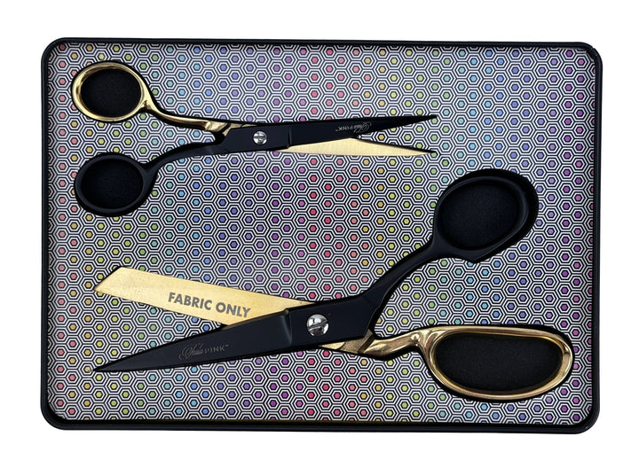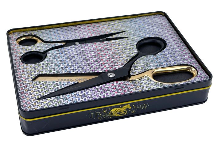 Domina tus proyectos de costura con precisión absoluta. Este set exclusivo de Tula Pink en edición limitada incluye dos tijeras profesionales: unas de 20 cm para cortar telas con exactitud quirúrgica y otras de 15 cm para trabajos detallados. Ambas cuchillas lucen un elegante grabado especial que coordina perfectamente con la colección Linework de Tula Pink. Presentadas en una sofisticada lata metálica negra y dorada, estas tijeras son herramientas imprescindibles para quilters exigentes que valoran la calidad y el estilo. Su filo afilado y construcción robusta garantizan cortes limpios y duraderos en cada proyecto.