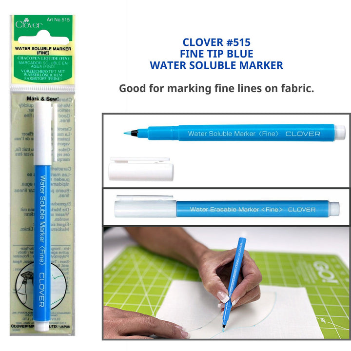Los marcadores solubles en agua Clover Blue son ideales para marcar telas en costura, quilting, apliques y bordados. Su tinta azul desaparece al instante con solo aplicar agua, asegurando marcas limpias y sin residuos. Fácil de usar y perfecto para proyectos detallados donde la precisión es clave. Lleva tus creaciones al siguiente nivel con la confiabilidad de Clover.