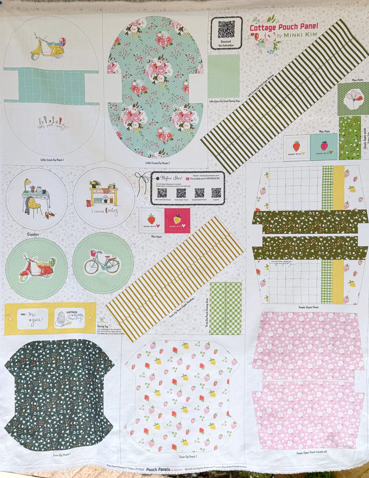 Crea encantadoras bolsas estilo rústico con este set de paneles de tela. Diseñado por Minki Kim, presenta una dulce mezcla de elementos de inspiración vintage como bicicletas, motivos florales y escenas pintorescas, todo sobre una paleta de suaves colores pastel.