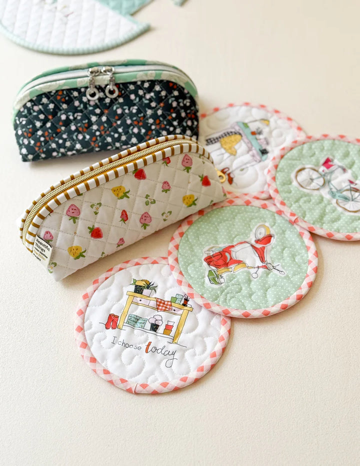 Panel de Estuches y Bolsitas circulares Cabaña de Flores Minki Kim