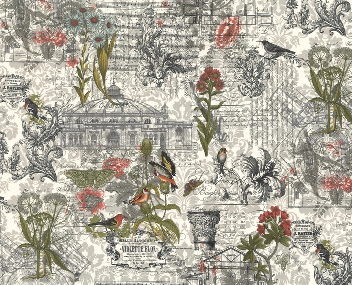 Panel textil Mis Collages Favoritos que evoca recuerdos de otra época con pájaros, flores y notas musicales en un diseño vintage. Dimensiones: 110 x 60 cm. Elaborado en algodón de calidad que garantiza durabilidad y confort. Ideal para decorar habitaciones, salas o espacios que deseen una atmósfera nostálgica y acogedora con un toque artístico y elegante.