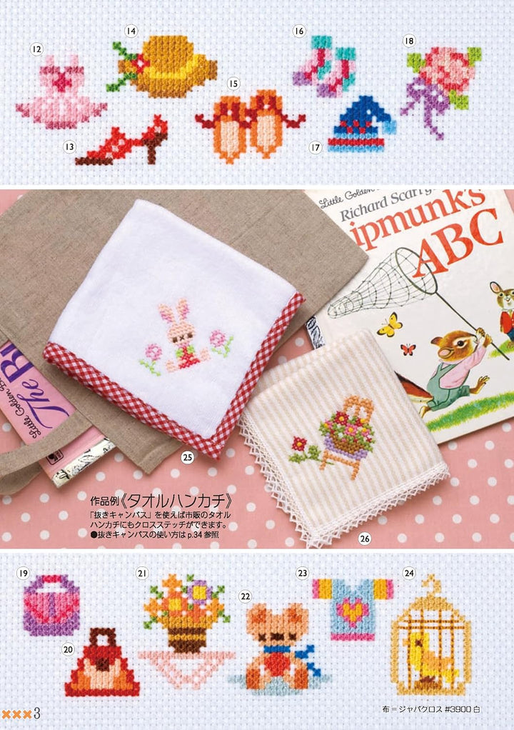 Este libro en japonés de 33 páginas reúne patrones de punto de cruz y bordes fáciles de coser, incluso para principiantes. Contiene 152 accesorios y motivos adorables y prácticos, ideales para crear tus propias piezas originales con cinta de bordar.
